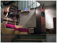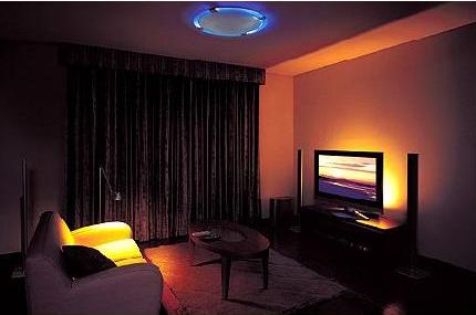 壁面は多くの住宅がビニールクロスを貼ってあると思います。しかも白系の色がほとんどです。 この状況でスクリーンに映すと自身の光が周りの壁に反射し再びスクリーンに入り込む現象が発生してしまいます。 かといって専用のシアタールームならば壁紙を暗い色にしてもかまいませんがリビングシアターの場合はそうはいきません。 そこでスクリーン周りの壁にカーテン等の暗幕的なもので反射を防ぐ必要があります。 また、音の反射を防ぐ為にビニールクロスを布クロスにしたり、特殊音響パネル等を貼るのも効果的です。